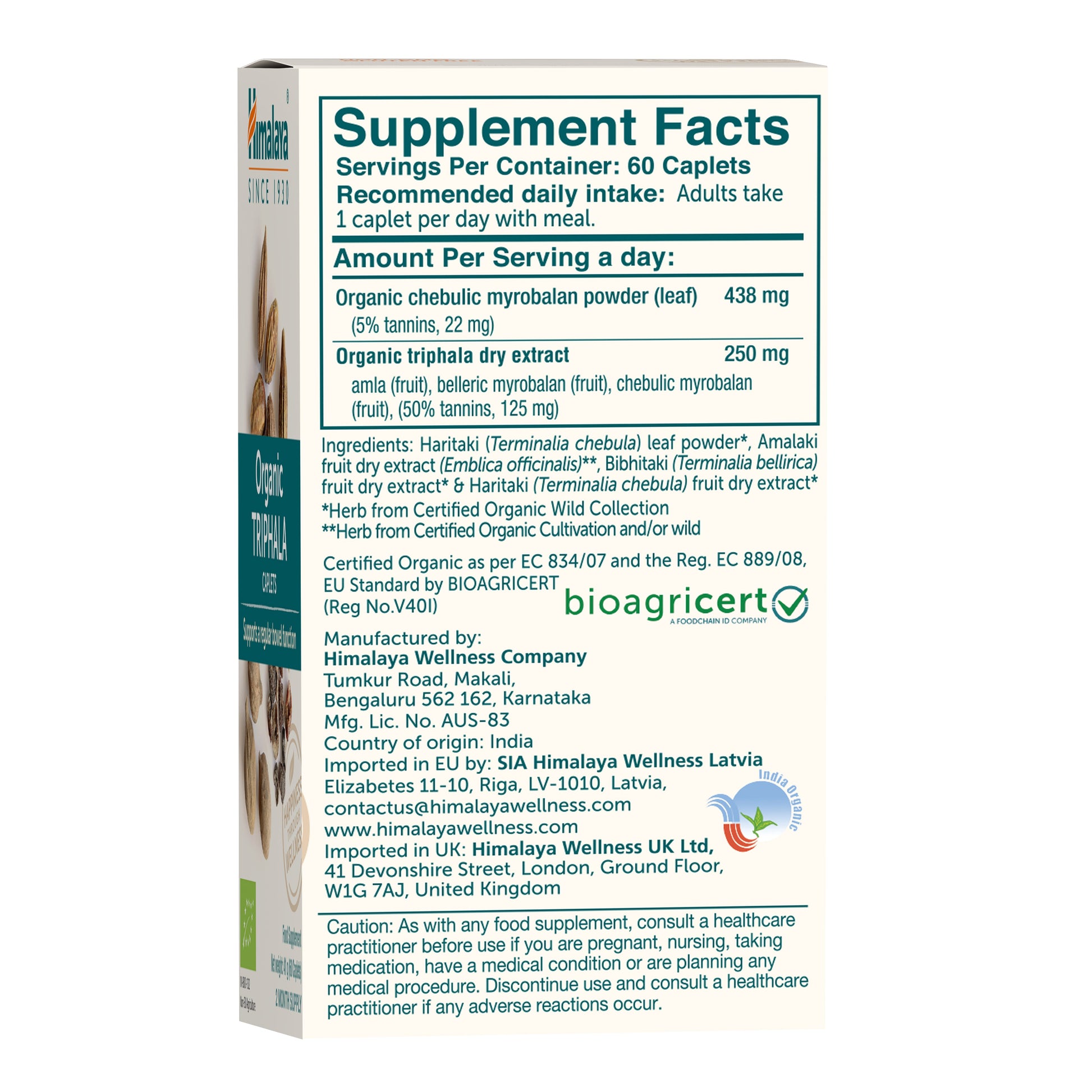 - Organic triphala extract: amla (fruit), belleric myrobalan (fruit), chebulic myrobalan (fruit), (50% tannins, 125 mg) 250 mg